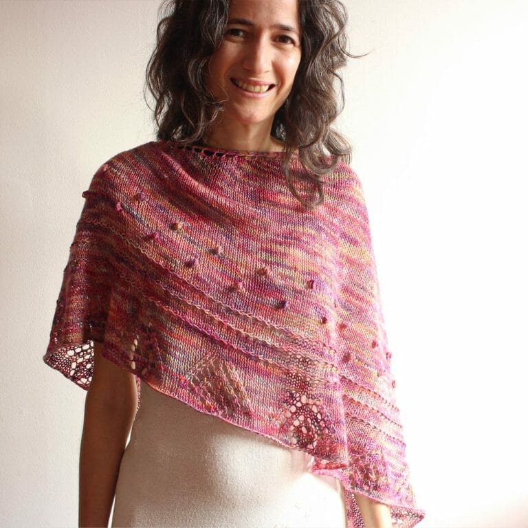 - Este chal se teje con una madeja de grosor fingering (400m en 100g) y agujas de punto, de grosor 5mm.